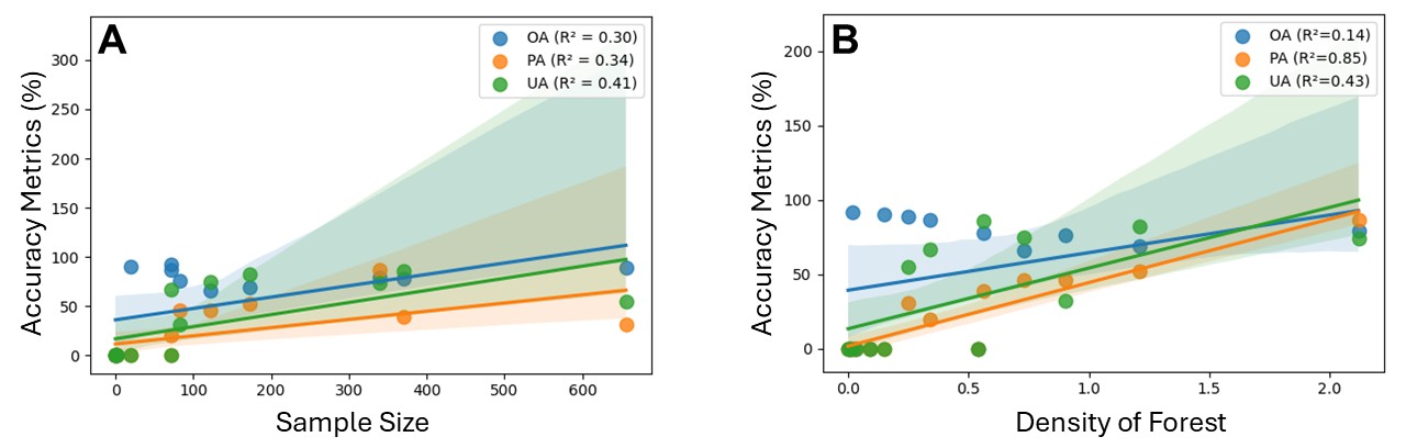 By better representing local heterogeneity, IOBS offers a robust and precise framework for validating categorical forest cover maps in complex tropical landscapes. This advancement in accuracy assessment practices has significant implications for remote sensing applications in tropical forest monitoring, conservation planning, and ecosystem service assessment.
